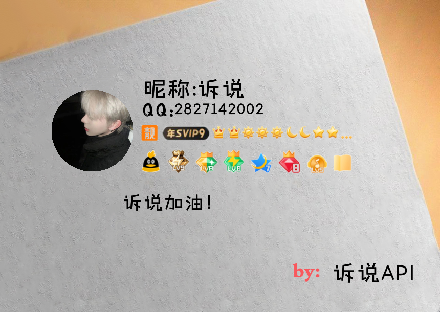 请求示例: https://api.bi71t5.cn/api/qqcard_2.php?qq=2827142002&nick=诉说&name=诉说API&msg=诉说加油!